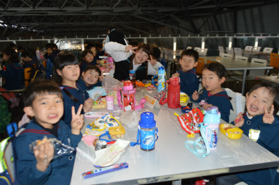 お昼ごはんはお弁当です。みんなで食べるお弁当はとても美味しいね(・ω・)☆