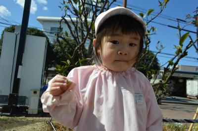 公園では地面に落ちていた小さなつぼみを拾って嬉しそうに見せてくれました。