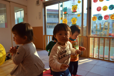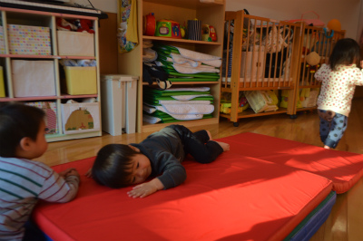 もも組さんはおやつを食べた後、室内で遊びました。