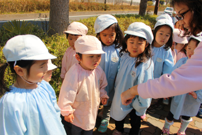 今日はめろん組とそら組で散歩に行きました。散歩をしていると春の季節を感じられるようなものがたくさんありました。