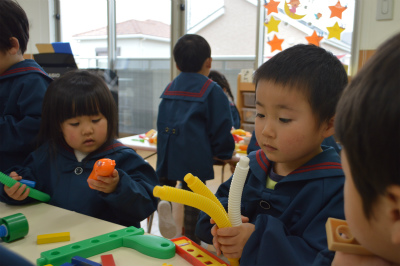 4月102017にじいろブログ今日は、ほし組です! 幼稚部に進級して10日がたちました。 おやつの後の時間を覗いてみました!! 各テーブルに違ったおもちゃが出ていて 自分の遊びたいおもちゃを選んでいます。 お友達と仲良く遊んでいます!! 明日もたくさん遊ぼうね! Post navigationPreviousPrevious post:4月7日(土)NextNext post:4月12日(水)