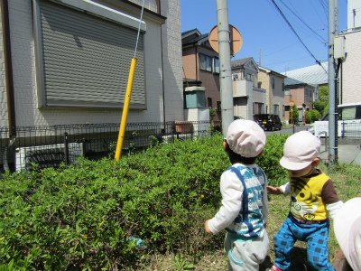 今日はいちご組さんは、青柳第25公園に行きました。風も気持ちよくお散歩日和でした。