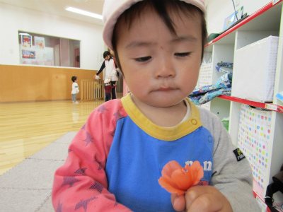 帰り際に可愛いお花を見つけて、保育園まで大事に持ってかえってきていました。