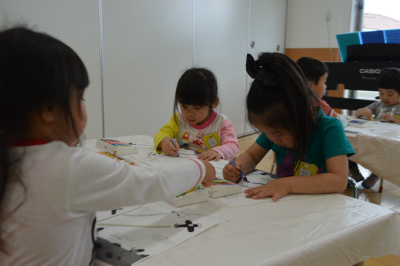 いろんな形の線を描いて子ども達も楽しみながら行っていました。