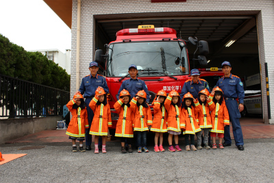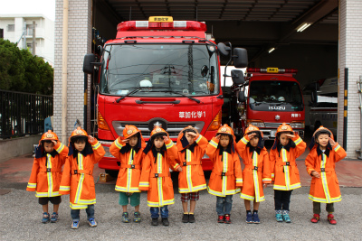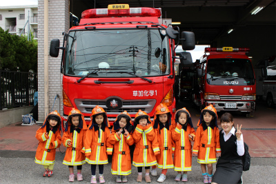 最後に消防士さんになりきってみんなで写真を撮りました(*^^)v