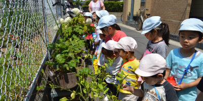 「赤いトマトあったよ」「まだ緑色ばっかりだね」と友達と観察していました(*^_^*)
