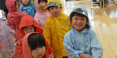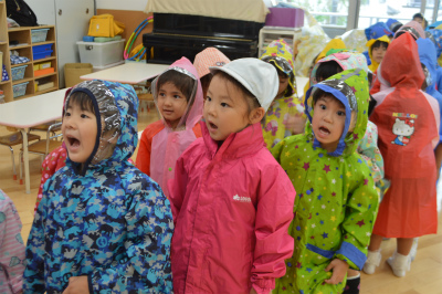 みんながカッパを着て歩いている姿を見て、「とてもかわいかった。」と話してくれました♪