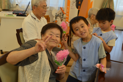 おじいちゃんおばあちゃんからは、お花の磁石をいただきました。