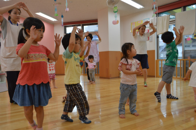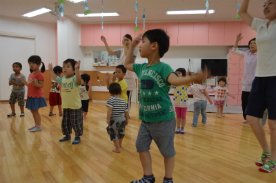 まず、ワンダーランド体操と、盆踊りをおどりました。