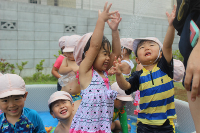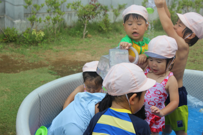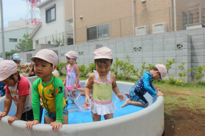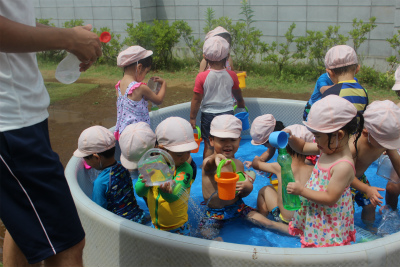 めろん組のお友達はみんなプールが大好きで、朝から「今日プールだよね」と嬉しそうに話していました。