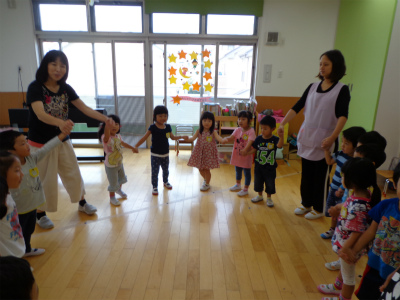 最近ほし組さんは名前を呼ばれると「here!」と元気よく返事が出来ます。とてもかっこよいですね(^‐^)