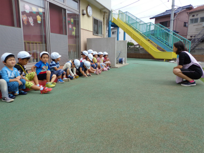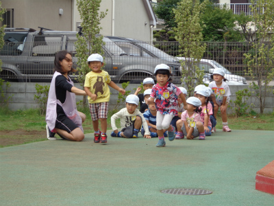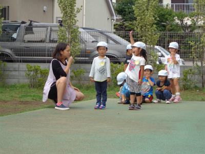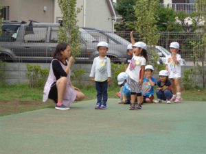 午後は園庭に出ました。先生の話を聞き、何をしたかというと・・・