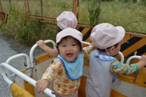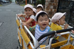 10月32017にじいろブログ 今日は、降っている雨が止み、もも組さんお散歩に行きました★ みんなカートに乗るととても嬉しそうにしています♪ お散歩の途中でいつもの猫じゃらしを発見!! みんな猫じゃらしを見つけると 欲しくて手を伸ばします。 風も気持ちよく 楽しいお散歩になりましたね♪ Post navigationPreviousPrevious post:第3回 園庭開放NextNext post:10月4日(水)