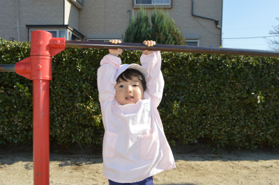 いちご組は、ふれあい公園に散歩に行きました☀ 保育者や友達と手をつないで歩いて行けるようになった子ども達です。 公園に着くと、めろん組さんも一緒に遊びます。 鉄棒にぶら下がったり、保育者と一緒に遊具に乗って…