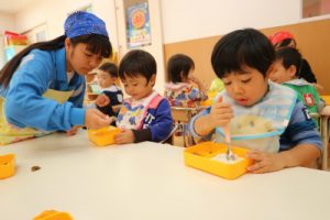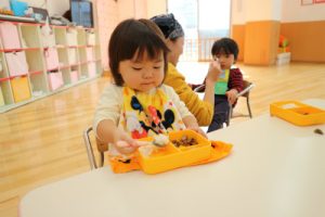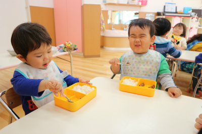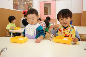 11月152017にじいろブログ 今日はいちご組さんです☆ いちご組のお友達は給食のときに自分で上手にスプーンを使って ごはんを食べることが出来るようになってきました!! 保育者が「おいしい?」と聞くと 「おいしい~」と言って素敵な笑顔を見せてくれました♪ とっても真剣にスプーンで食べ物をすくう姿も見られましたよ!! 中には先生にやってもらい嬉しそうな子も・・・ 今日の給食も美味しかったですね♪ Post navigationPreviousPrevious post:11月13日(月)NextNext post:11月16日(木)