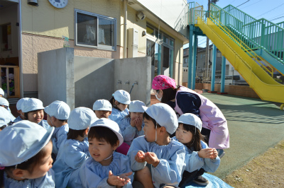 たいよう組さんの英語の時間を覗いてみました♪ 今日は、ゆりこ先生とアルマン先生の英語教室の日でした。 まずはお友だち同士で「How are you?」と聞き、答えていました。 大きな声で「Happy!!」「…