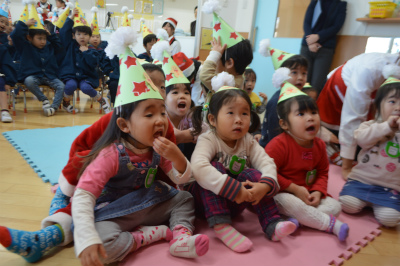 今日はにじいろ保育園のクリスマス会でした★ 子どもたちは自分で作った帽子をかぶって会に参加しました♪ まずはじめは、先生たちによるハンドベルの演奏です。  …