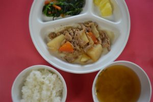 2月52018にじいろ給食ブログ~ 今日の給食 ~ ・肉じゃが ・ほうれん草と人参のおかか和え ・ごはん ・キャベツとしめじのみそ汁 ・パイン ~ 今日のおやつ ~ ・牛乳 ・ブルーベリー蒸しパン Post navigationPreviousPrevious post:2月2日(金)NextNext post:発表会 幼稚部保護者演目 参加の保護者様へ