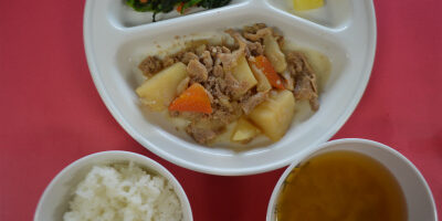 2月52018にじいろ給食ブログ~ 今日の給食 ~ ・肉じゃが ・ほうれん草と人参のおかか和え ・ごはん ・キャベツとしめじのみそ汁 ・パイン ~ 今日のおやつ ~ ・牛乳 ・ブルーベリー蒸しパン Post navigationPreviousPrevious post:2月2日(金)NextNext post:発表会 幼稚部保護者演目 参加の保護者様へ