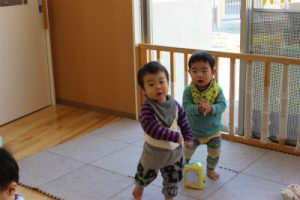 「あー」と「わあー」など言葉を発して保育者に伝えてきました。言葉を発するようになり成長を感じますね。