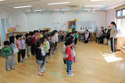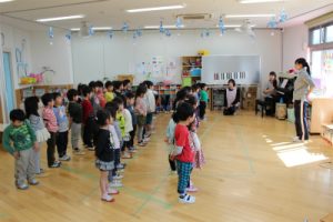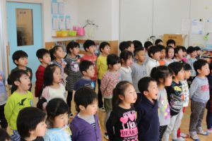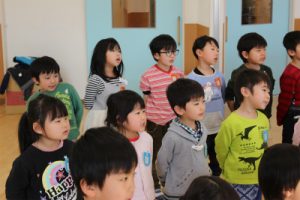 午後の幼稚部さんでは、合唱の練習をしていました。日曜日がいよいよ本番。