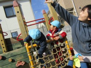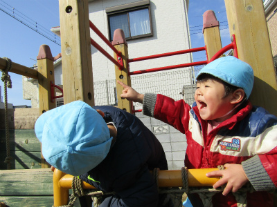2月162018にじいろブログ 今日は散歩から帰ってくるといちご組が園庭で遊んでいました。 もも組さんは遊んでいるいちご組さんを窓から覗いていました★ いちご組は遊んでいるときにヘリコプターと飛行機雲を発見しました! みんな見つけると指をさし 「あー!ヘリコプター」と嬉しそうに教えてくれました♪ Post navigationPreviousPrevious post:2月13日(火)NextNext post:2月23日(金)