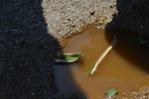 幼稚部さんは、先生と一緒に笹船を作り、昨日の雨でできた水溜りに