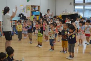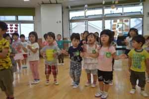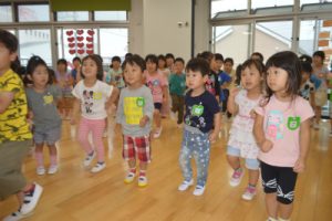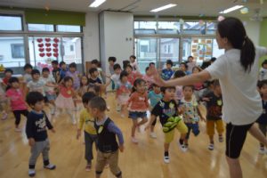 6月202018にじいろブログめろん組は、幼稚部と一緒に夏祭りの盆踊りの練習をしました。 曲は「もったいない音頭」と「コバトン音頭」です。 先生や幼稚部のお友だちに見本を見せてもらうと初めてのことだからか少し戸惑っていた様子でした。 何回か練習をするとお兄さんやお姉さんの真似をして踊ることが出来ました。 めろん組頑張りましたね。 明日からも一緒に踊ろうね。 Post navigationPreviousPrevious post:6月19日(火)NextNext post:6月27日(水)