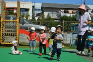 今日の、いちご組は園庭で遊びました。
