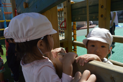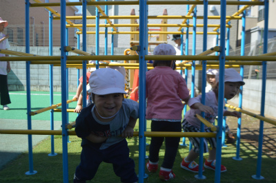 今のいちご組は自分でアスレチックの遊具やジャングルジムに登ることができるようになりました。