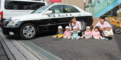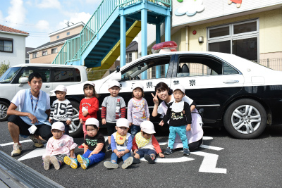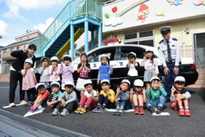 幼稚部は交通安全教室できたパトカーと