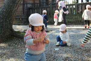 10月252018にじいろブログいちご組は厳島神社へ散歩に行きました。 神社に落ちているどんぐりをたくさん拾いました。 涼しい木陰はどんぐりを拾うのにぴったりでした。 たいよう組は園庭で遊びました。 アスレチック遊具やサッカーボールで遊びました。 サッカーではしっかりとアウトサイドでボール運んでいて ダブルタッチやマルセイユ・ルーレット シザースなどの テクニックもあり、とても驚きました。 皆上手でした。 Post navigationPreviousPrevious post:10月24日(水)NextNext post:10月26日(金)