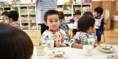 草加にじいろ保育園は完全自園調理給食、園庭開放と子育て講座で地域交流、看護師常駐の体調不良児対応保育園です。