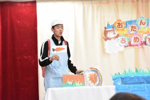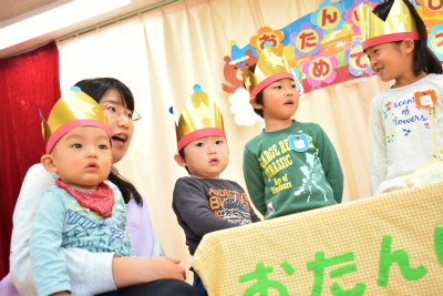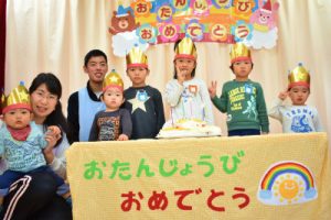 11月生まれのお友達をみんなで、ケーキや歌のプレゼントをしてお祝いしました。