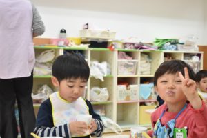 12月42018にじいろブログめろん組のおやつの様子です。 今日はみんな「牛乳がおいしー!」と言って とても嬉しそうに牛乳を飲んでいました。 たいよう組の音研指導の様子です。 発表会に向けて、楽しみながらも 真剣に楽器を奏でました。 保育園中に素晴らしい演奏が響いていました。 Post navigationPreviousPrevious post:平成30年度 第5回子育て講座「トイレトレーニングについて」NextNext post:12月5日(水)