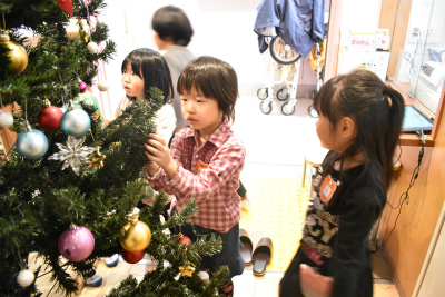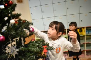 ほし組は、今日飾りつけをしたクリスマスツリーと