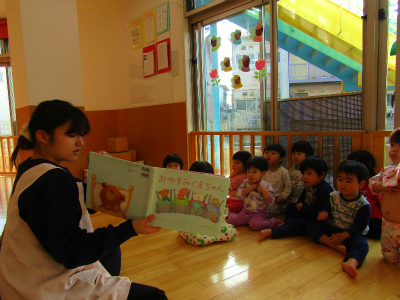 ポカポカと暖かい1日となりました。 やわらかい日差しが射し込むお部屋を覗くと お昼寝の準備中でした!! 給食を食べてパジャマに着替えると 楽しみな絵本の時間です☆ みんな夢中で絵本を見ています…