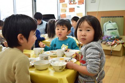 ほし組はお友達と楽しく話しながら元気に食べました。