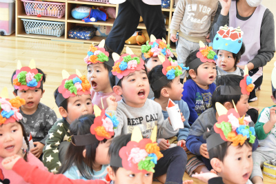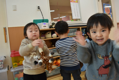 いちご組の室内遊びの様子です。 先生が保育部の発表会のCDを流したら 他のクラスのお遊戯も先生の真似をしながら踊っていました。 そら組の室内遊びの様子です。 ぬいぐるみをふたりで挟んで落とさない ように走るゲームをしまし…