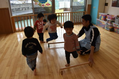 上手にジャンプをしたりバランスよく歩いたりして楽しく遊びました。
