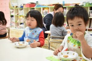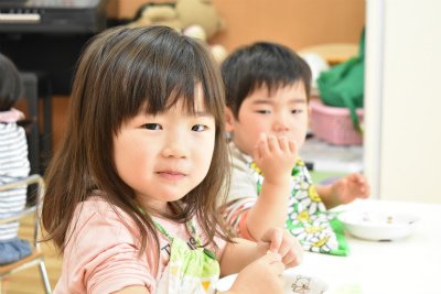 草加にじいろ保育園は完全自園調理給食、園庭開放と子育て講座で地域交流、看護師常駐の体調不良児対応保育園です。