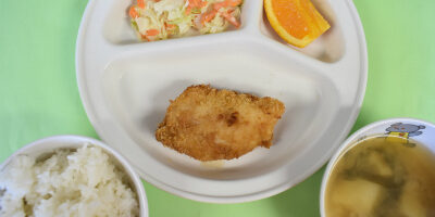 6月172019にじいろ給食ブログ ~ 今日の給食 ~ ・カレイのフライ ・コールスローサラダ ・ごはん ・じゃがいもと玉ねぎのみそ汁 ・オレンジ ~ 今日のおやつ ~ ・牛乳 ・あじさいゼリー ・ビスケット Post navigationPreviousPrevious post:6月15日(土)NextNext post:6月18日(火)