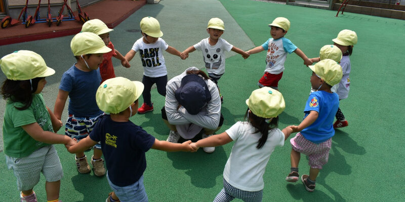 皆で手を繋いで先生を囲んで大はしゃぎ!!