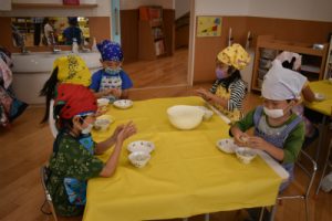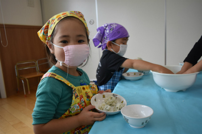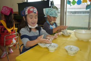 6月242019にじいろブログたいよう組とそら組は「おにぎりづくり」をしました。 手にお米が着かないようにしっかりと水で 手を濡らしてから握りました。 初めて握るお友達も多く、お料理の楽しさに触れられました。 自分で作ったおにぎりは格別で「おいしー!」と言って 食べていました。 ご家庭でもお子さんとお料理をしてみてはいかがでしょうか。 Post navigationPreviousPrevious post:6月21日(金)NextNext post:6月25日(火)