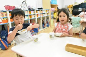 6月272019にじいろブログいちご組の制作の様子です。 自分たちで筆を持って可愛い色を塗る練習です。 みんなとても楽しんで作ったので、完成が楽しみですね。 そら組のおやつの様子です。 今日のおやつは「マカロニきな粉」 そら組のお友だちはみんなこのおやつが大好きで、 ニコニコとお友達とおしゃべりしながら美味しそうに食べました。 明日のおやつも楽しみですね。 Post navigationPreviousPrevious post:6月27日(木)NextNext post:6月28日(金)