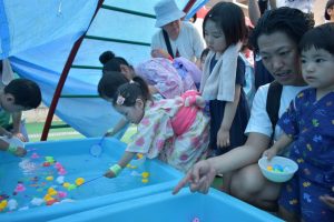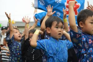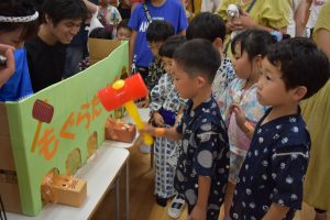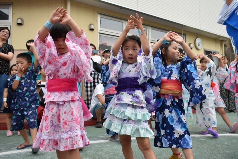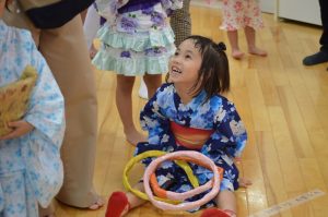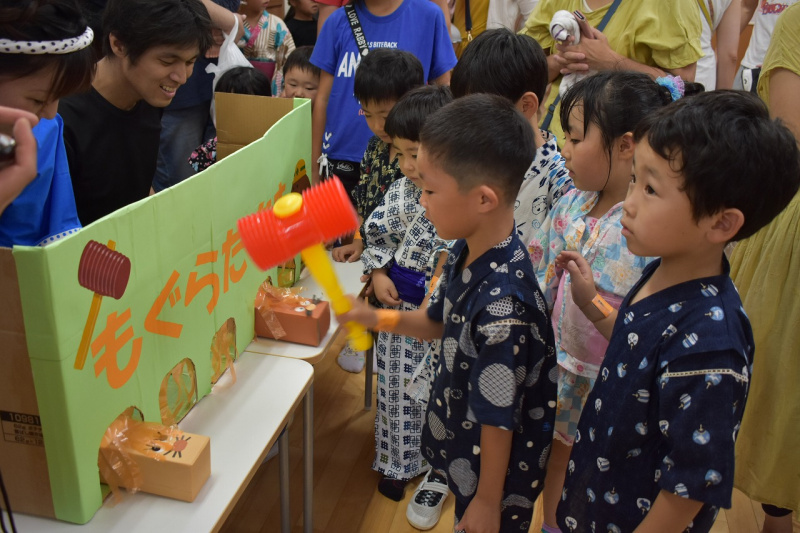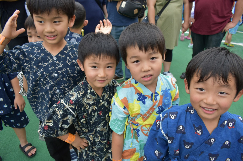 7月272019にじいろブログ7月20(土)に行われた夏祭りの様子です。 浴衣&甚平に着替えて可愛い姿見せてくれました! アラレちゃん音頭やコバトン音頭を歌いながら 元気いっぱい上手に踊れました☆ 園庭で大人気の宝物救い☆ 室内ではボーリングや輪投げ、 もぐら叩き等様々な遊びで盛り上がりました! たいよう組はこの日のために 一生懸命練習してきた太鼓をかっこよく演奏してました☆ Post navigationPreviousPrevious post:令和元年度 第3回 子育て講座~発達~についてNextNext post:7月29日(月)