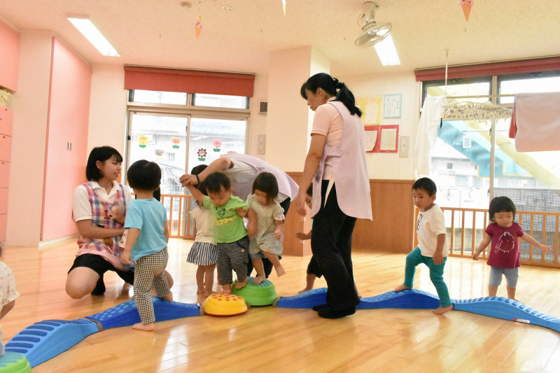 8月222019にじいろブログいちご組の様子です。 大好きなトンネルくぐり!! ウェイビーバランスでは夢中になって遊びました☆ 巧技台では階段登ったり降りたりとっても上手☆ 絵本の読み聞かせはまねっこしたりしながら 笑ったり、楽しそうに聞いてました!! 明日も元気に遊ぼうね☆ Post navigationPreviousPrevious post:8月22日(木)NextNext post:8月23日(金)