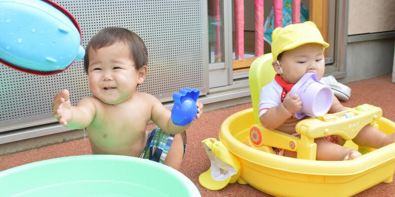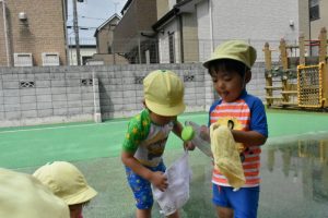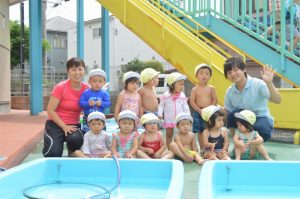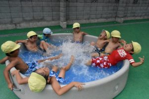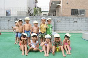 8月262019にじいろブログプール遊びの様子です。 今日は「プール納め」の日、今年最後のプールを 全クラス皆でめいっぱい楽しみました。 「こっちも撮って!」と元気な声で先生を呼んで 笑顔でポーズ! 同じ体勢で仲良く足をバタバタさせて大はしゃぎ! 最後に今年使ったおもちゃを各クラスごとに きれいに掃除をして感謝の気持ちを伝えました。 今年も楽しくプールで遊べました。ありがとうございます。 Post navigationPreviousPrevious post:8月26日(月)NextNext post:8月27日(火)