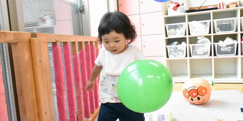 普通のボールとは違ってよく弾む風船にとても驚いていました。
