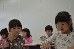 本日の幼稚部の様子です。 たいよう組はひらがなのお勉強をしました。 とっても上手に書いてました。 そら組のハロウィン制作の様子です。 真剣な表情で取り組んでました。 保育部はいちご組の様子です。 お昼寝する姿も可愛いいですね☆ 明日も元気に遊ぼうね☆ Post navigationPreviousPrevious post:10月21日(月)NextNext post:10月24日(木)